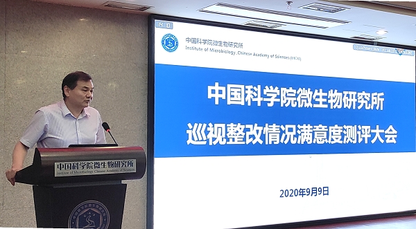 9月9日,微生物所召开巡视整改工作满意度测评会。北京分院监督审计处处长周亚东、业务主管王娟出席会议。微生物所领导班子成员,党委委员,纪委委员,管理支撑部门负责人,研究室(中心)正副主任,党支部书记、副书记,团委书记,工会主席、副主席,学生会主席,全体研究员、副研究员共100余人参加会议。会议由微生物所党委书记、副所长李俊雄主持。
