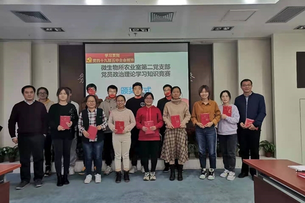 为了进一步深入广大党员同志对十九届五中全会精神的学习,会议最后进行了围绕十九届五中全会精神的知识竞赛。刘宏伟研究员和叶健研究员为获奖的党员同志颁奖。
