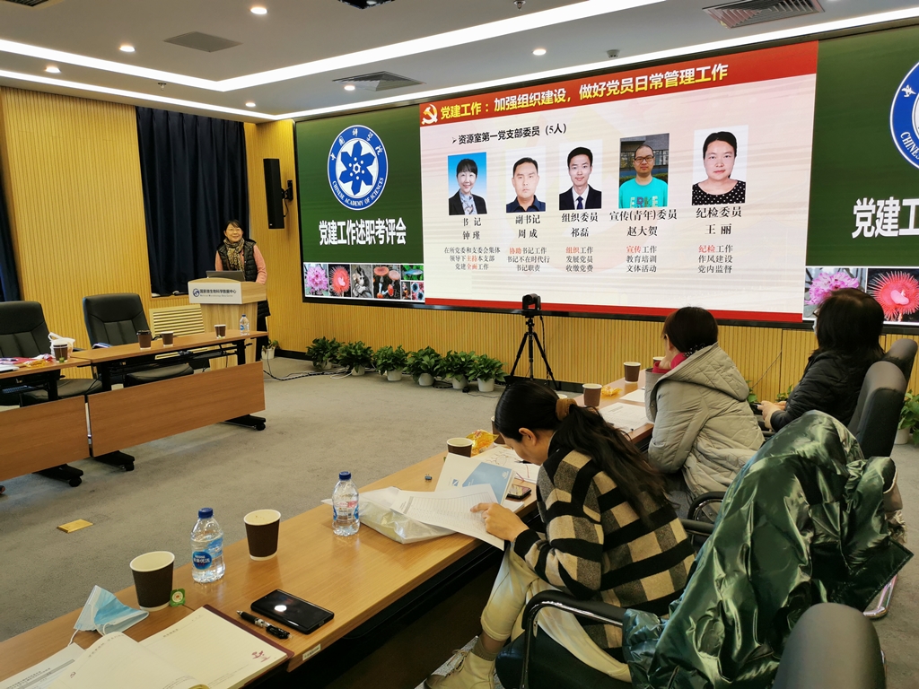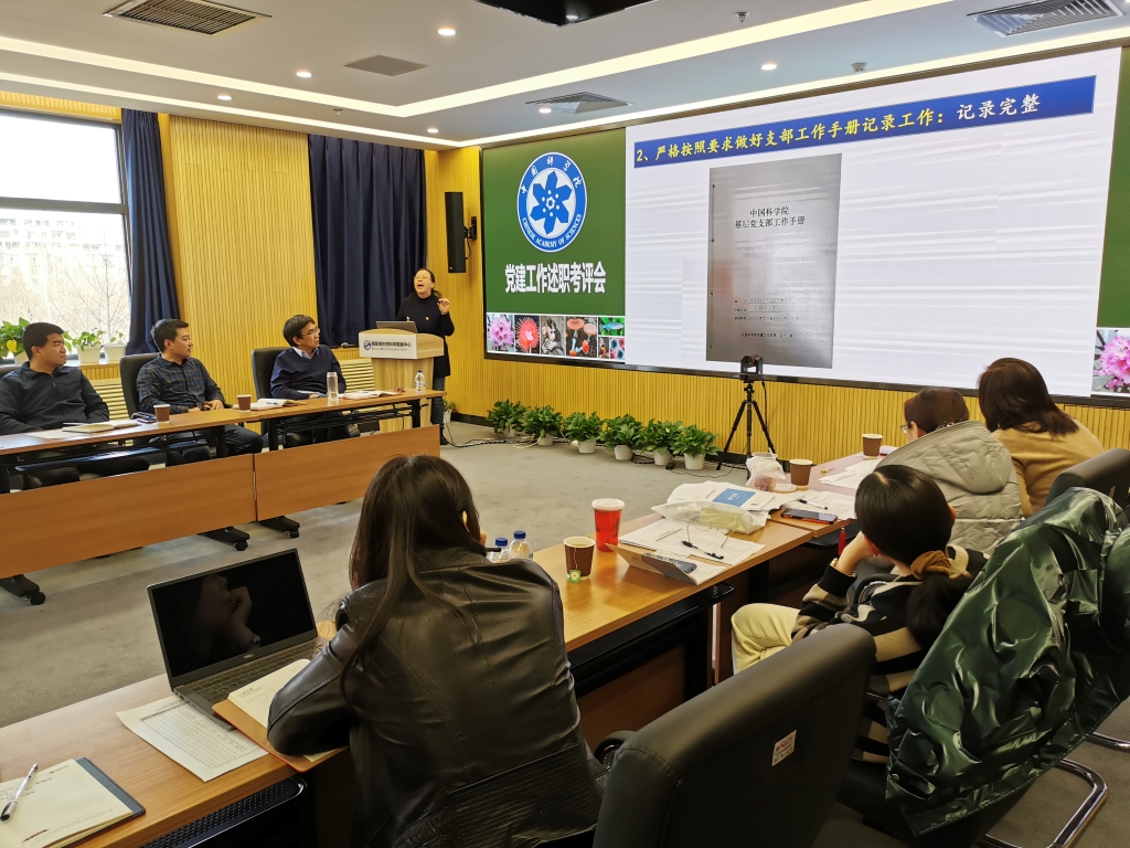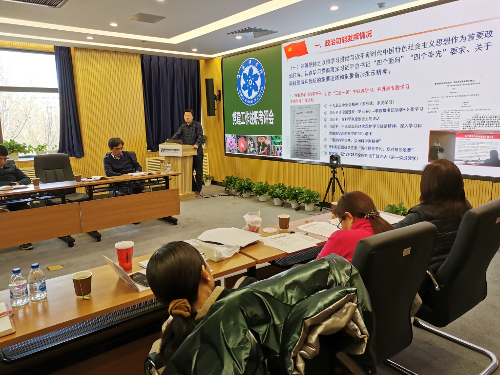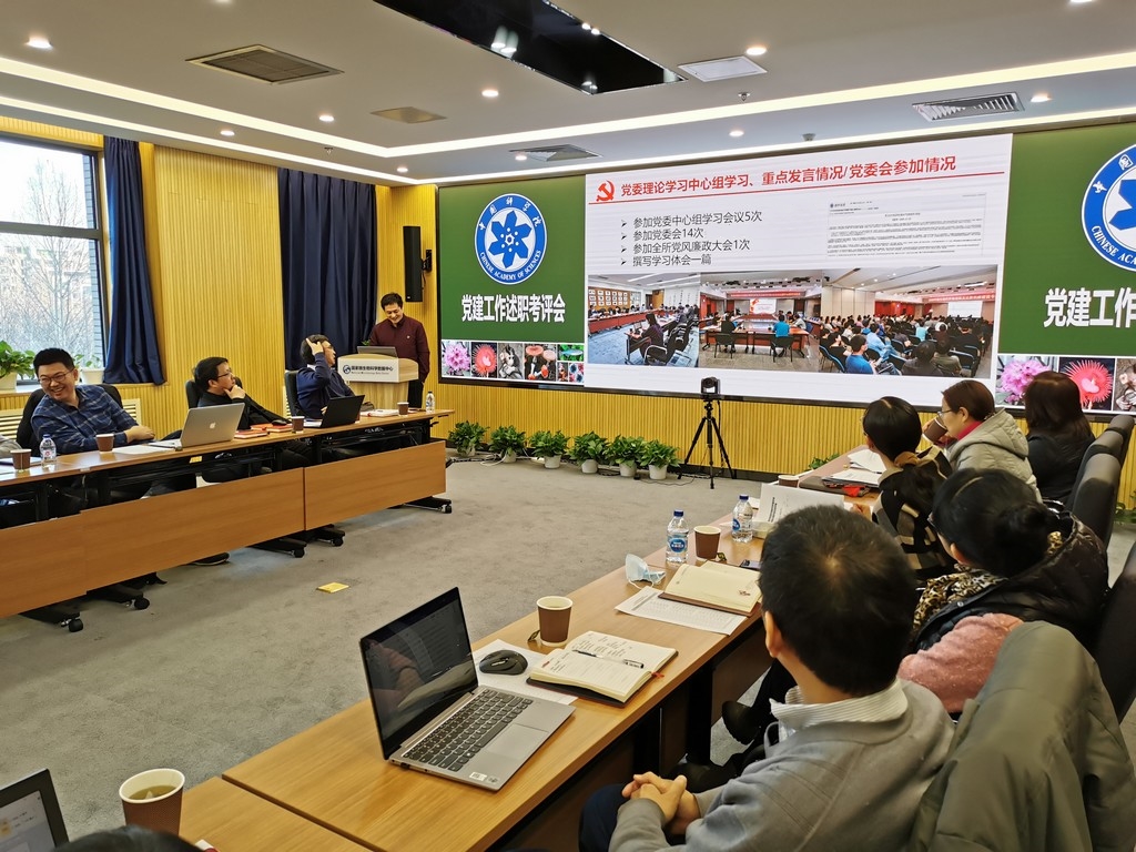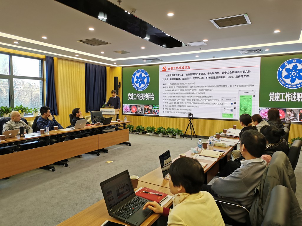 李俊雄首先介绍了2020年度党建考评工作和“基层组织建设年”活动达标评估的相关要求。随后,各位党委委员分别围绕2020年政治建设、思想建设、组织建设、作风建设、创新性工作开展、投入党建工作的时间和精力以及存在问题和思考进行了述职汇报。党支部书记们也分别就政治功能发挥、支部班子建设、党员队伍建设、作用发挥情况以及党建与科研融合发展等5个方面取得的成效、存在的问题和下一步工作思路进行了报告。由党委书记、副书记、党建工作处负责人以及各科研支撑单元党员群众代表组成的评审小组现场对述职情况进行了打分。