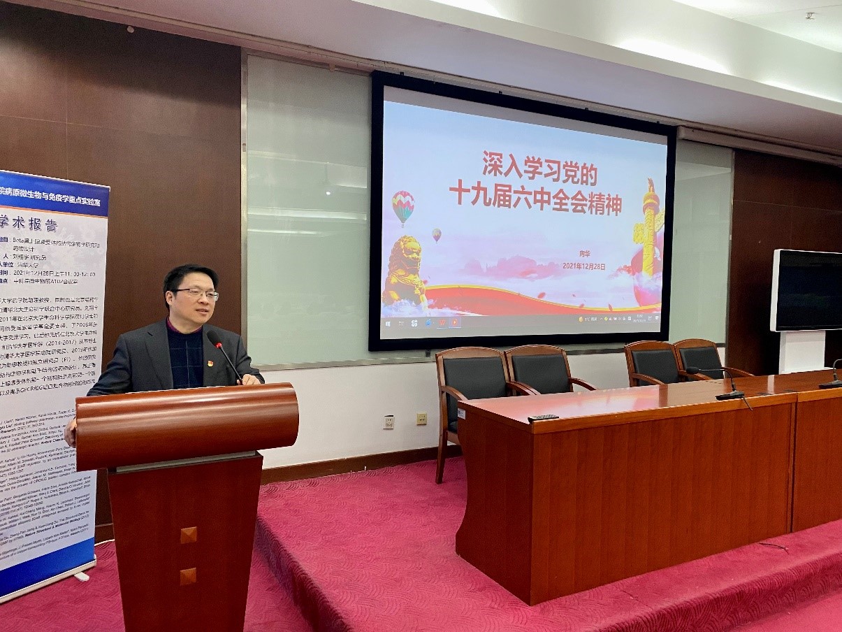 12月28日下午,微生物所病原室第二党支部全体党员在A102会议室召开支部党员大会,会议邀请了所党委委员、副所长向华研究员给全体党员讲党课,支部书记王硕研究员讲党课,并进行了支部宣传委员改选。