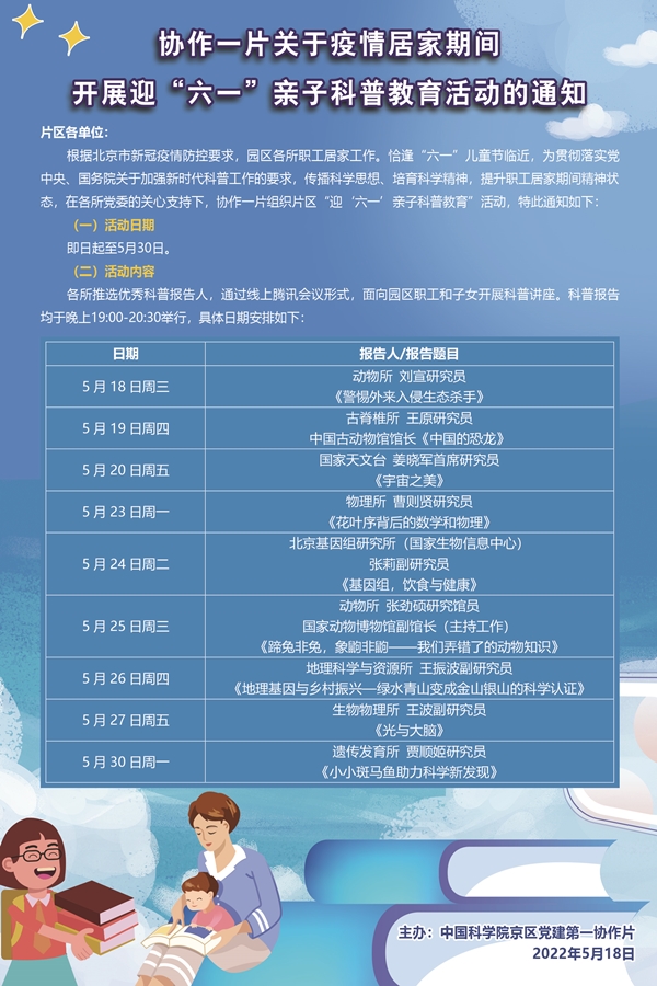 京区党建第一协作片关于疫情期间开展迎“六一”亲子科普教育活动的通知