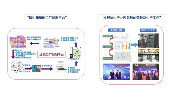 通过对氨基酸衍生产品合成模块的组装和代谢途径的优化,构建高催化性能的氨基酸衍生物戊二胺、5-氨基戊酸、白藜芦醇等菌种,实现戊二胺、5-氨基戊酸、白藜芦醇等高效生物合成;研发聚酰胺5X的聚合工艺并表征其性能,建立生物催化、分离提取和产品制备的具有自主专利保护的全套生产工艺,实现聚酰胺的绿色生物制造,引领中国氨基酸工业开拓新兴的产业领域。