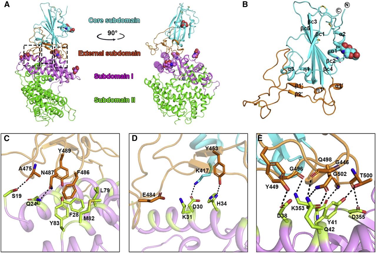 HCoV-19 RBD结合受体ACE2的整体结构与分子作用网络
