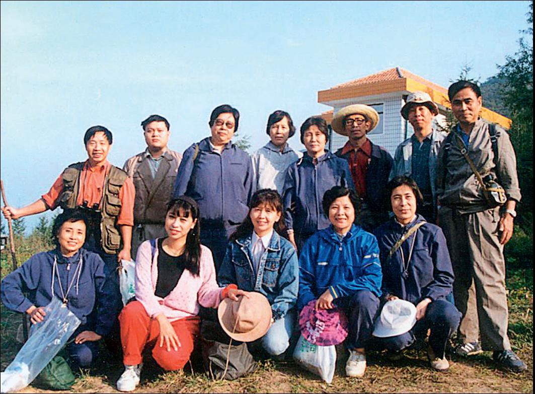 1995年庄文颖(前排右1)与研究室同事在北京百花山考察野外真菌资源