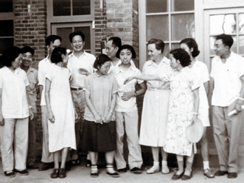 左:1955-阎逊初(后左3)在北京微生物研究室与同事及捷克专家Zenova等合影