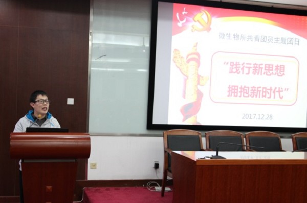 所团委书记贾婴植详细介绍了“践行新思想、拥抱新时代”组织生活会的背景、我所共青团组织框架的基本情况、2017年工作的主要内容,以及2018年团委工作的思考和展望。之后,来自六个团支部的十二名优秀团员代表结合自身科研工作实际,分享了十九大报告的学习新体验。其中,职工团支部的沈兰表示,日新月异的科技进展带来了时代的改变,作为在科研一线的共青团员,应该耐得住清贫和寂寞,认真对待自己的工作岗位;2015级博士团支部的周爽讲到,年轻团员应该心怀理想不忘初心,自觉用青春和激情铸好中国梦,用个人小梦想的实现,汇聚实现国家大梦想;2016级博士团支部的刘琪提到,他的家乡是云南一个很小的县城,他生长的地方和现在生活的北京有巨大的差异,这种差异让他对十九大报告中习主席鼓励人才向基层和一线流动深有感触,作为新一代的共青团员,不应该独享其成,应该时刻把祖国的需要放在第一位,国家哪里有需要,我们就应该去哪里抒写青春,为祖国发展贡献力量;2017级博士团支部的闫磊和王云浩均表示,尽管他们的研究方向微生物污水处理应用化的道路困难重重,但是解决污水处理难题的重要技术,正是因为有了众多像科院人一样的青年对实验室小目标的坚守,才能最终实现十九大报告中“绿水青山”的美好蓝图;2015级硕士团支部胡启跳在发言中说到,十九大报告中提到从现在本世纪中叶,把我国建成富强民主文明和谐美丽的社会主义现代化强国,这段时间,自己从25岁到55岁,正值奋斗上升时期,个人努力了,国家才能有发展,个人的成长与国家的命运息息相关;2016级硕士团支部刘晴介绍了自己从事的蛹虫草研究工作,她为自己能够成为国家科技动车上的一列车厢深感荣耀,希望自己的科研工作能为实现人民对美好生活的向往,特别是为全人类的健康列车增加动力。