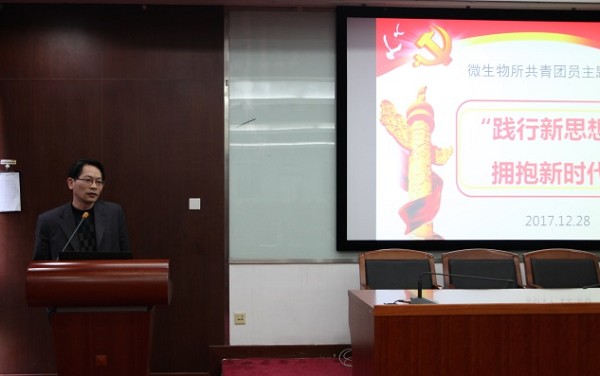 党委书记李俊雄以《面向新时代 开拓创新 自信进取 让青春在理想中闪烁》为题,从“全面贯彻落实党的十九大精神、中国科学院的改革历程与探索、面向国家发展的科学技术创新”三个方面,为全体团员上了一堂精彩生动的团课。在报告中,李书记首先与大家一同温习了十九大报告,解读了习近平同志新时代中国特色社会主义思想;之后,带领团员同志们回顾了科学院的历次改革过程和发展历程,论述了科学院提出的“三个面向、四个率先”的重要现实意义;而后,通过对近年来世界微生物科技强国之间的成果数据比较,向大家阐明了在当前形势下我所面临的机遇和挑战。最后,他寄语广大团员青年同志:十九大报告中提出的科技成果,极大的提升了科技工作者,特别是年轻科技工作者职业自信;时值2018年微生物所迎来建所60周年之际,在座青年同志要在十九大精神的指引下,开拓创新,自信进取,助力国家及科学院的创新发展,在美好的青春年华,担负起历史赋予的使命。