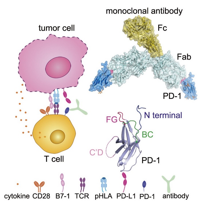 图. PD-1抗体作用机制及其与PD-1的结合