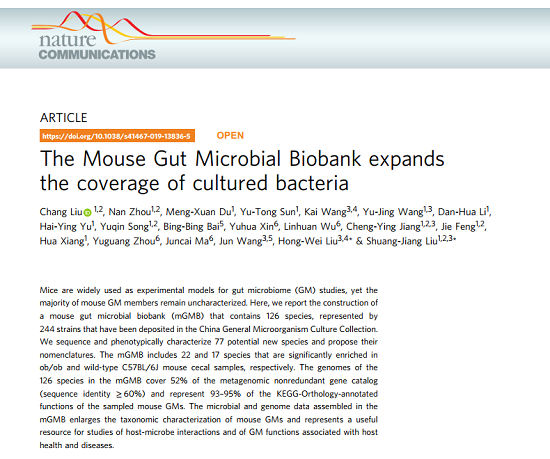 1月7日,《自然·通讯》发表了中国科学家完成的小鼠肠道微生物资源库工作。