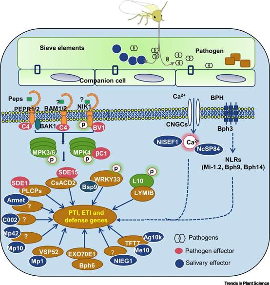 图1:虫媒病原及媒介昆虫与植物免疫机制互作模型