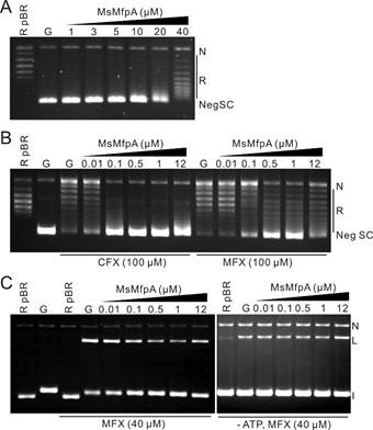 图1 MfpA对DNA旋转酶活性的调控