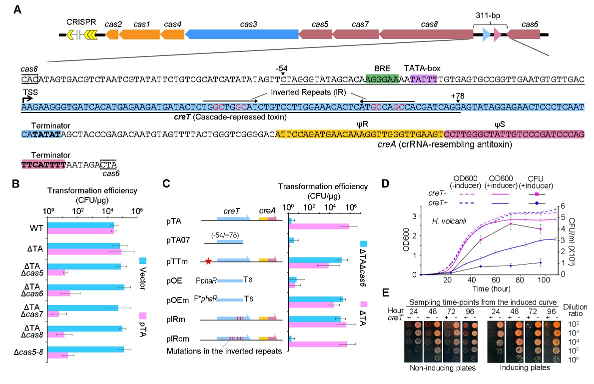图1. CRISPR-Cas系统与CreTA毒素-抗毒素系统的互作机制