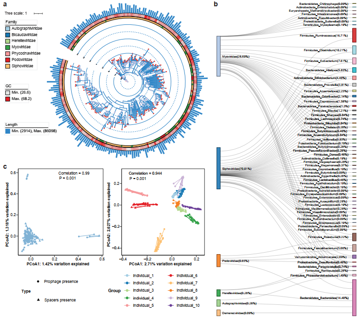 图3 肠道菌群汇中与病毒和CRISPR相关的研究结果