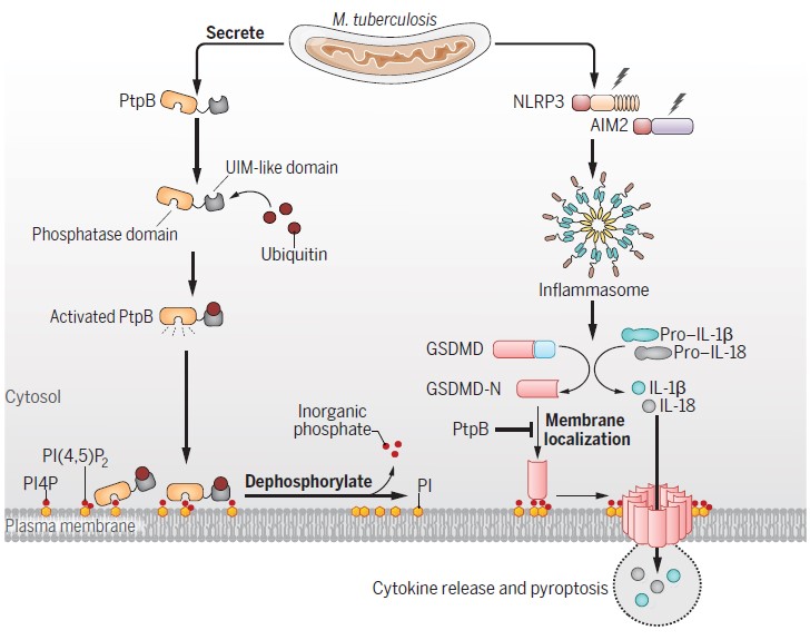 微生物所科研团队揭示结核分枝杆菌的一种脂磷酸酶劫持宿主泛素抑制细胞焦亡的重要机制