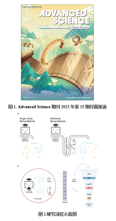 近日,中国科学院微生物研究所王军研究团队和中国科学院动物研究所宋默识研究团队合作在Advanced Science上发表题为“Efficient Mining of Anticancer Peptides from Gut Metagenome”的封面文章。该研究利用抗菌肽(Antimicrobial peptides, AMPs)和抗癌肽(Anticancer peptides, ACPs)之间的重叠特征,结合成熟的AMP预测方法(Ma et al., Nature Biotechnology, 2022)与宏基因组挖掘技术,有效地从肠道微生物组中挖掘新的ACPs。