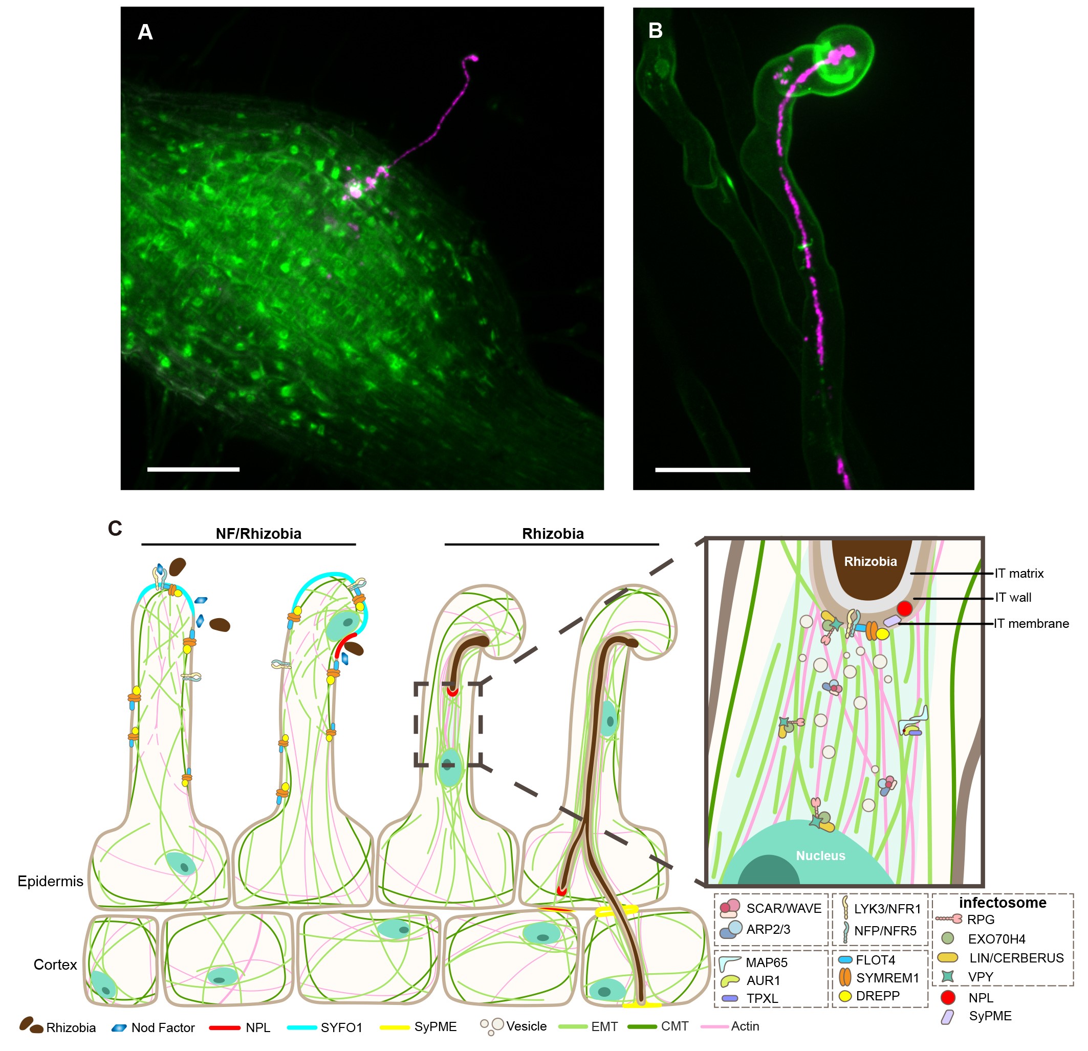 图3 根瘤菌内共生过程中细胞骨架的动态与调控