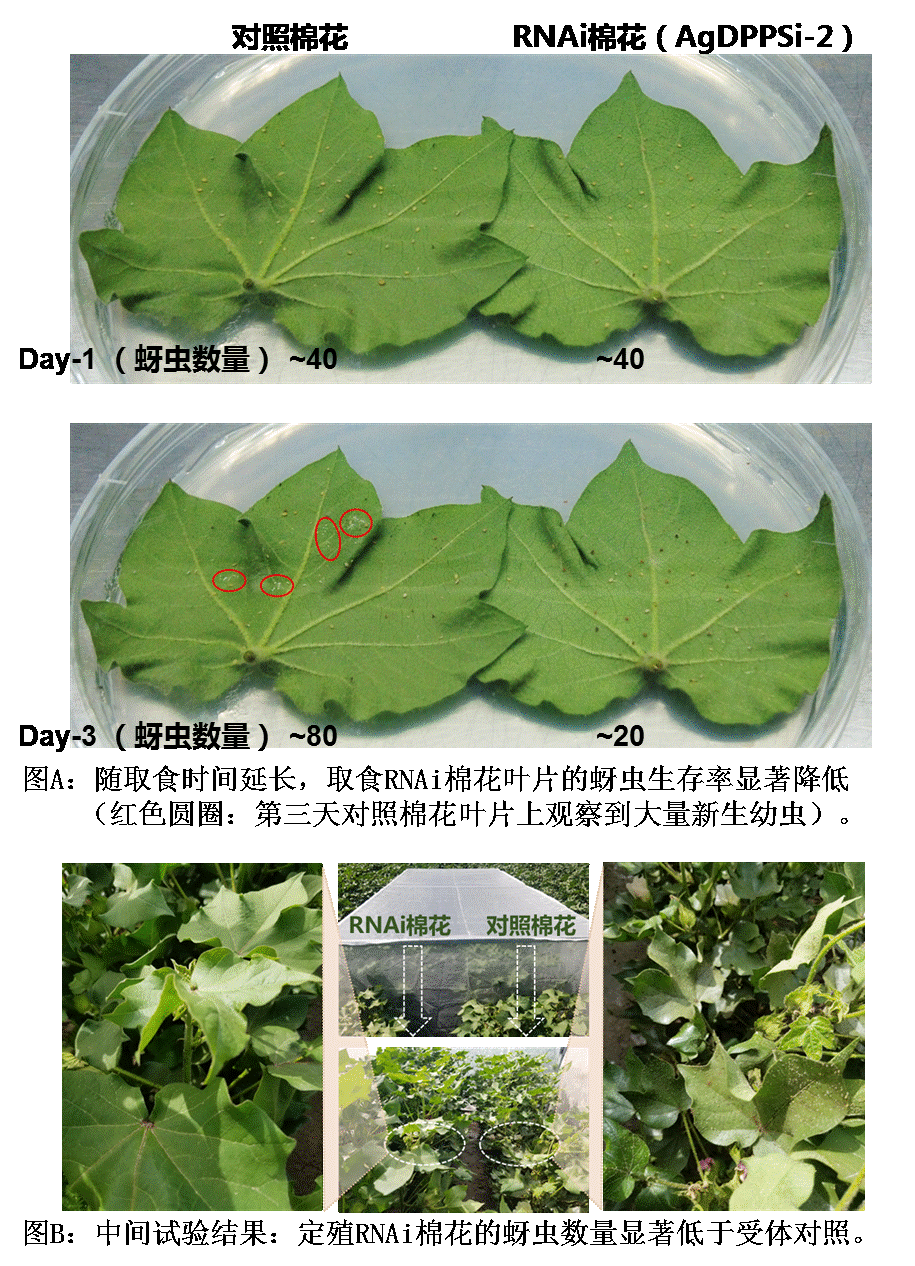 近期,中国科学院微生物研究所郭惠珊研究团队在Plant Biotechnology Journal发表题为“HIGS-mediated crop protection against cotton aphids”的研究论文。团队通过在棉花中表达特异性靶向棉蚜AgDPPS1基因的dsRNA,获得了抗蚜虫的棉花新种质。