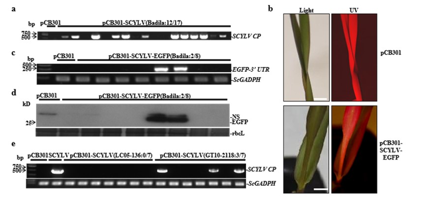 1月21日, 中国科学院微生物研究所叶健团队在Phytopathology Research发表了题为“Development and application of Polerovirus sugarcane yellow leaf virus vectors in sugarcane”的研究论文。该研究构建了甘蔗黄叶病毒的侵染性克隆并对甘蔗黄叶病毒进行改造,实现了外源蛋白的表达。主要研究结果包括:1)构建了农杆菌介导的甘蔗黄叶病毒侵染性克隆载体系统,在本生烟草以及栽培甘蔗品种中验证了其有效性;2)发展了一种新型亚基因组表达策略实现了表达植物外源蛋白EGFP;3)鉴定了桃蚜是甘蔗黄叶病毒的媒介昆虫之一;4)利用病毒侵染性克隆对三种常见的甘蔗品种的抗病性进行评估,结果表明我国主栽甘蔗品种柳城05-136>桂糖76>黑皮果蔗拔地拉。该研究为探究甘蔗黄叶病毒的致病机制、病毒与宿主互作以及甘蔗品种的抗性评估进一步创造了条件。