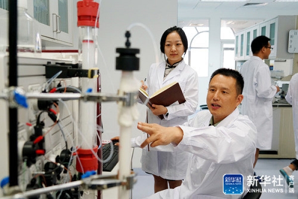 国家应急防控药物工程技术研究中心研究员钟武(前)在位于北京的实验室工作(2019年4月29日摄)。新华社发