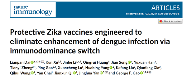 北京时间2021年7月15日晚23时,《自然—免疫学》在线发表一项新研究,中国科学院微生物研究所高福院士、戴连攀研究员、严景华研究员等基于结构生物学“设计”的一款新型保护性寨卡疫苗,为抗疫“武器库”再添利器。