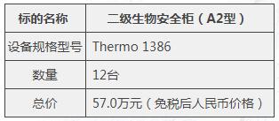 微生物所二级生物安全柜(A2型)采购项目,经评审委员会评审和采购人确认,现将评标结果公布如下: