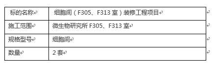 中国科学院微生物研究所细胞间(F305、F313室)装修工程项目,经评审委员会和采购人确认,现将评标结果公布如下: