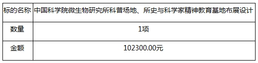 中国科学院微生物研究所科普场地、所史与科学家精神教育基地布展设计项目,经评审委员会评审和采购人确认,现将评标结果公布如下: