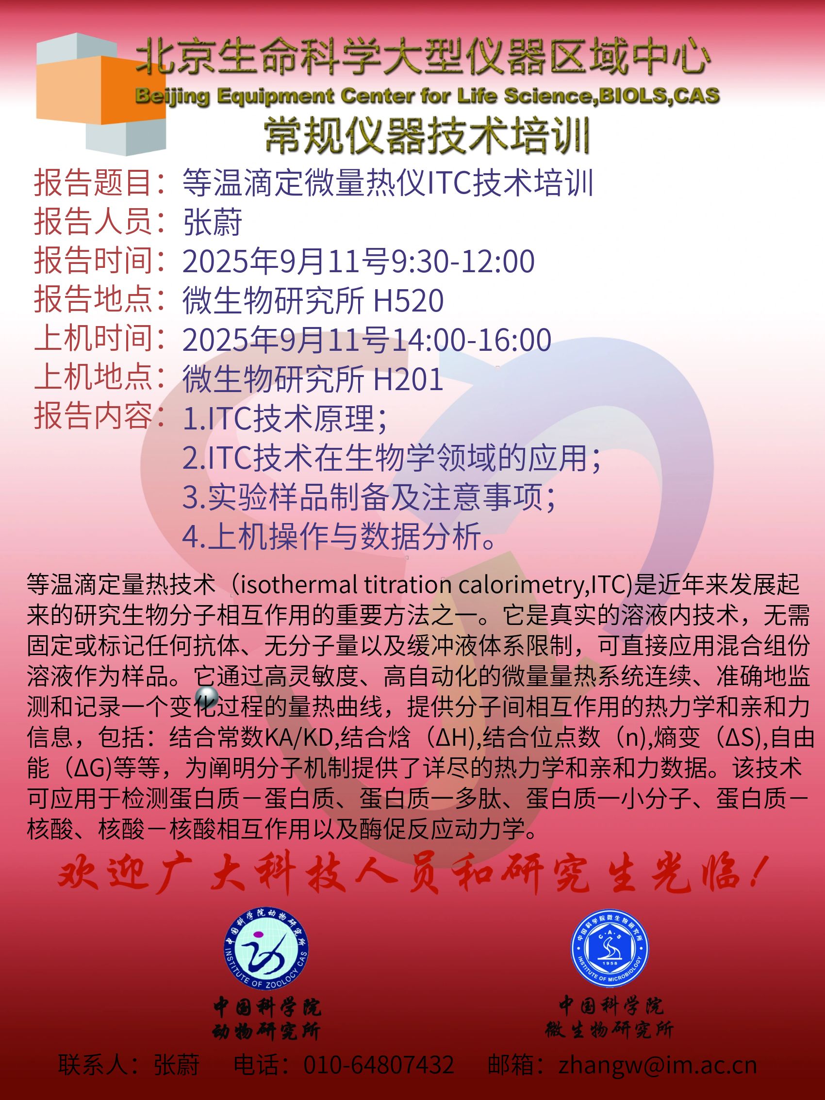 关于等温滴定微量热仪ITC技术培训的通知