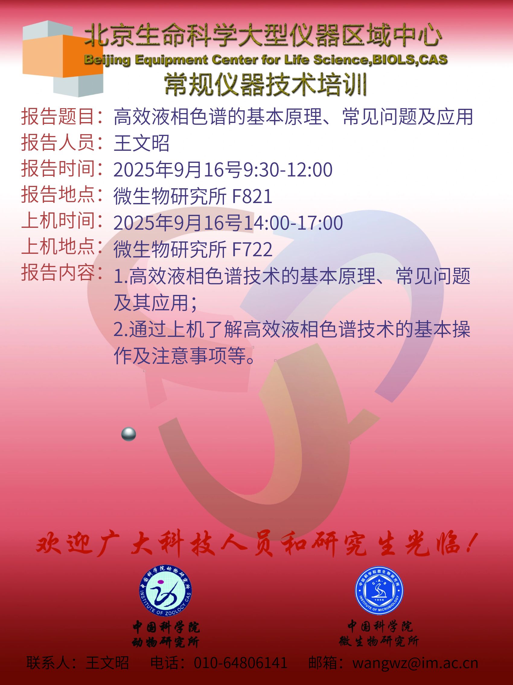 关于高效液相色谱的基本原理、常见问题及应用技术培训的通知