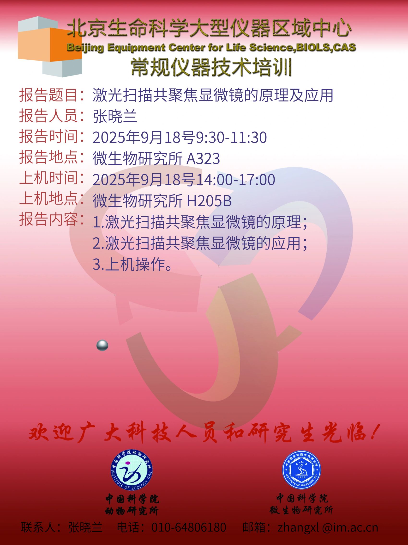 关于激光扫描共聚焦显微镜的原理及应用技术培训的通知