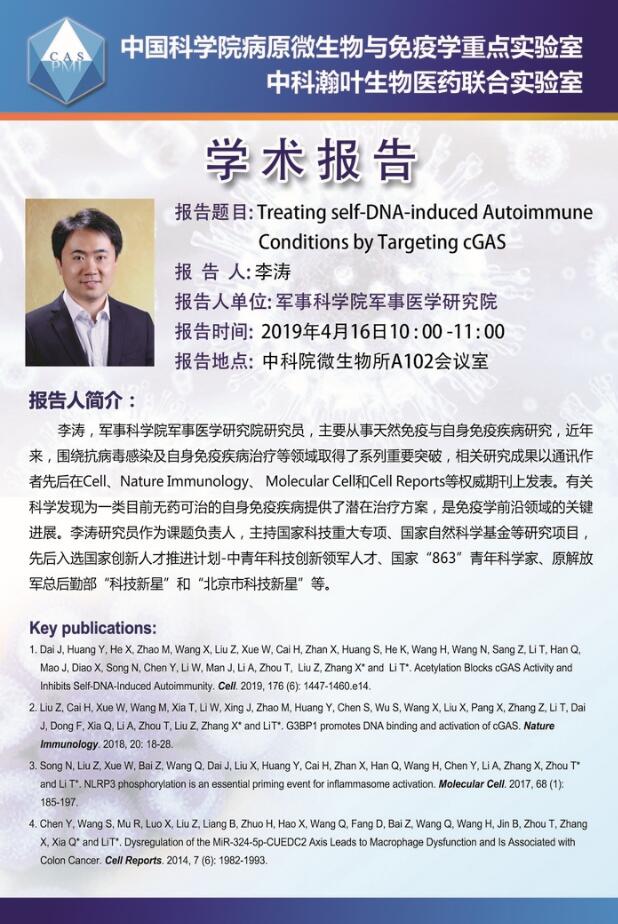 病原室学术报告:Treating self-DNA-induced Autoimmune Conditions by Targeting cGAS