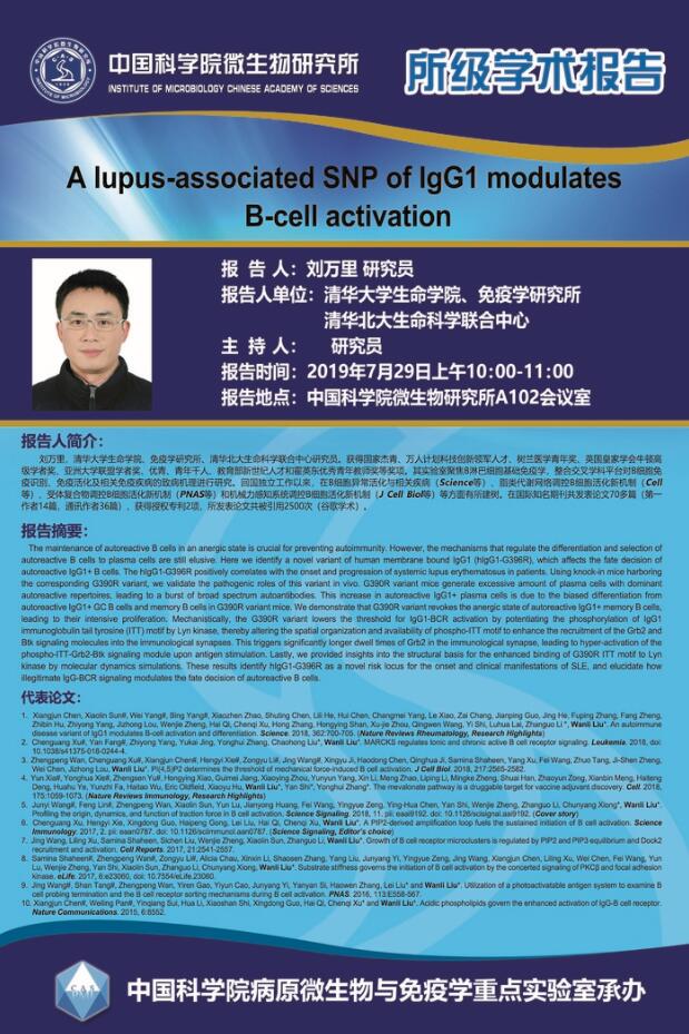 所级学术报告(病原室承办):A lupus-associated SNP of IgG1 modulates B-cell activation