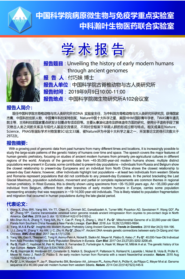 病原室学术报告:Unveiling the history of early modern humans through ancient genomes