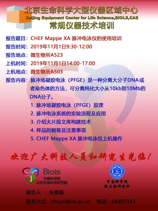 所级中心关于举办常规仪器技术培训(2019年第15讲)的通知