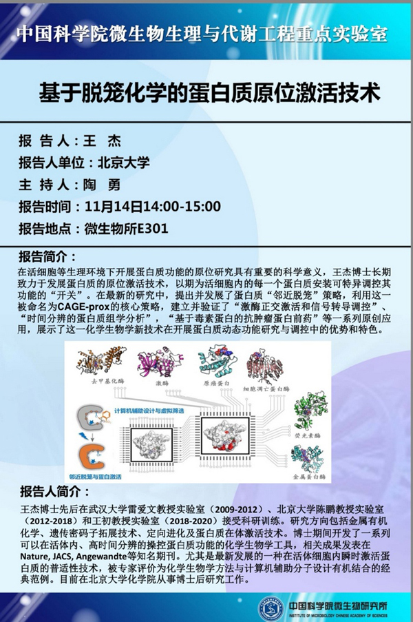 工业室学术报告:基于脱笼化学的蛋白质原位激活技术