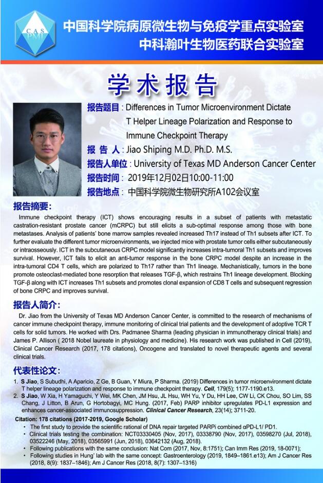 病原室学术报告:Difference in Tumor Microenvironment Dictate T Helper Lineage Polarization and Response to Immune Checkpoint Therapy