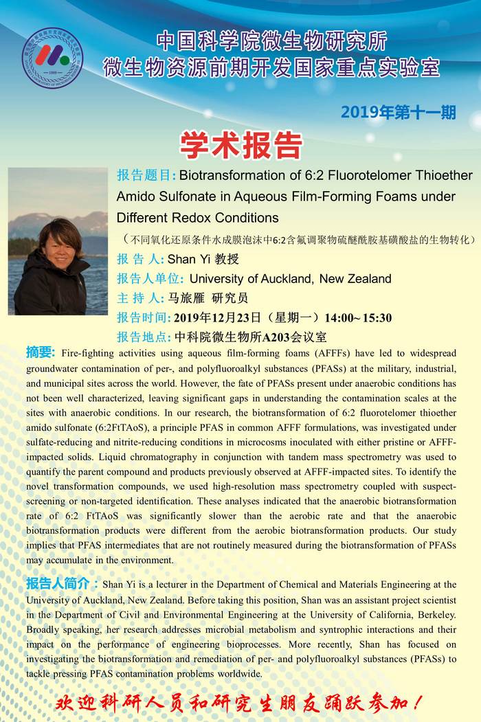 资源室学术报告(第十一期):Biotransformation of 6:2 Fluorotelomer Thioether Amido Sulfonate in Aqueous Film-Forming Foams under Different Redox Conditions