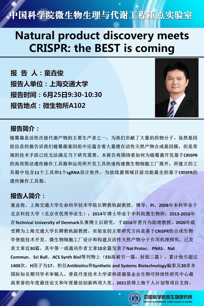 工业室学术报告:Natural product discovery meets CRISPR: the BEST is coming