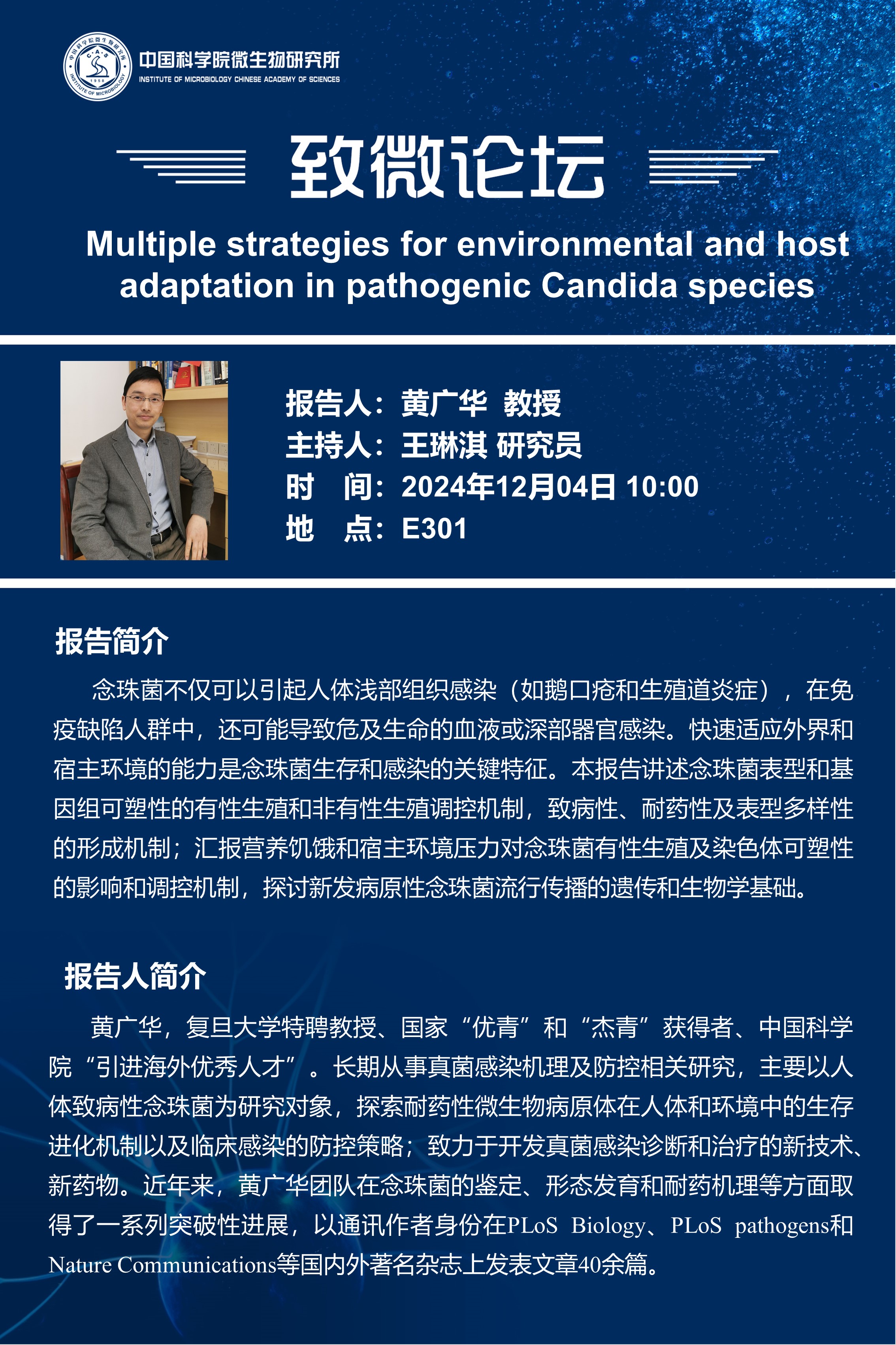 ​致微论坛:Multiple strategies for environmental and host adaptation in pathogenic Candida species