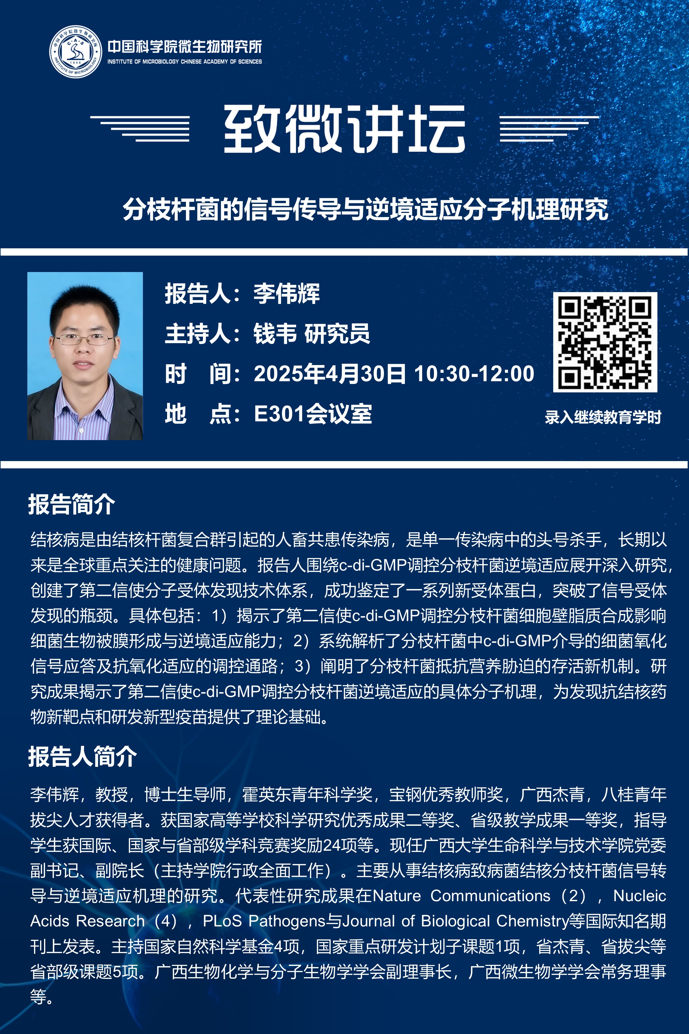 致微讲坛: 分枝杆菌的信号传导与逆境适应分子机理研究