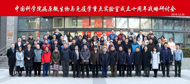 中国科学院病原微生物与免疫学重点实验室(以下简称“病原室”)成立10周年战略研讨会于2018年12月30日在微生物研究所E301会议室隆重召开,十年前的今天,经中国科学院批准,病原室正式成立。此次会议邀请了华大基因主席杨焕明院士、河北大学校长康乐院士、北京生命科学研究所副所长邵峰院士、中国疾病预防控制中心病毒病研究所武桂珍书记、军事医学研究院杨瑞馥主任、广东省结核病控制中心周琳主任、深圳市第三人民医院刘磊院长、病毒学国家重点实验室陈明周和周溪两位副主任、中国科学院武汉病毒所王延轶所长和石正丽研究员、院国际合作局曹京华局长、院前沿教育局张永清副局长和沈毅处长、上海巴斯德所刘冬平处长等与会,共同见证病原室十年成长历程,共谋未来发展战略。刘双江所长、李俊雄书记、向华副所长、钱韦副所长,各研究室主任以及所行政部门处长也参加了会议。