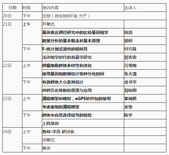 培训对象以从事群体遗传学及相关组学研究的青年研究人员、博士后和高年级研究生为主。欢迎广大青年科研人员、博士后、研究生申请报名。