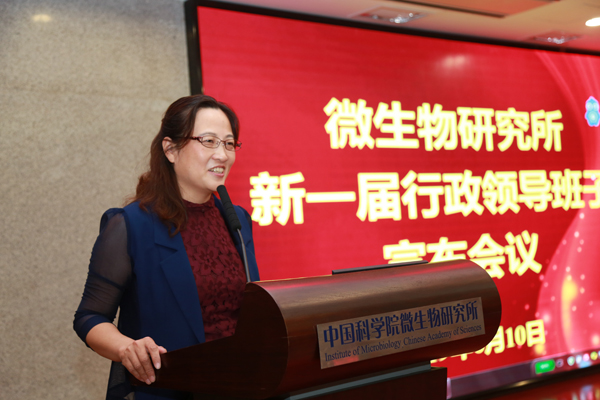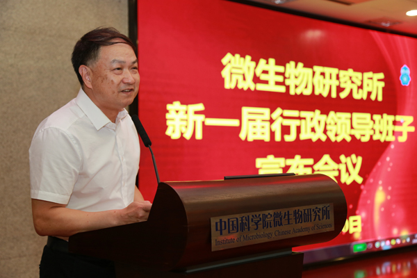 马扬首先宣布了中科院党组关于微生物所新一届领导班子的任职决定:钱韦、李俊雄、向华同志任副所长,杨永峰同志任党委副书记、纪委书记。钱韦副所长作为法定代表人牵头负责研究所行政工作。
