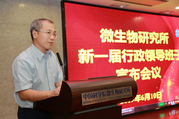 钱韦代表新一届领导班子对院党组、院人事局、北京分院分党组、各级领导和微生物所全体同仁的信任和支持表示衷心感谢。感谢上一届领导班子的辛苦工作。钱韦在发言中明确指出了目前研究所面临的三大挑战,即能否在国家战略需求领域做出突出贡献;能否在世界多极化受到严重威胁和激烈学科竞争态势下继续扛住微生物学和生物技术自主创新、原始创新的大旗;能否在国家和我院科技体制机制改革中解决迫在眉睫的重大问题。他指出,新任领导班子将尽快启动研究所的综合改革工作,遵循不忘初心、牢记使命;团结一致、凝心聚力;坦诚公正、锐意进取三个原则,在战略规划、人才培养、绩效评价、产业扶持、管理支撑、重大项目争取和创新文化等方面进行全方位变革。
