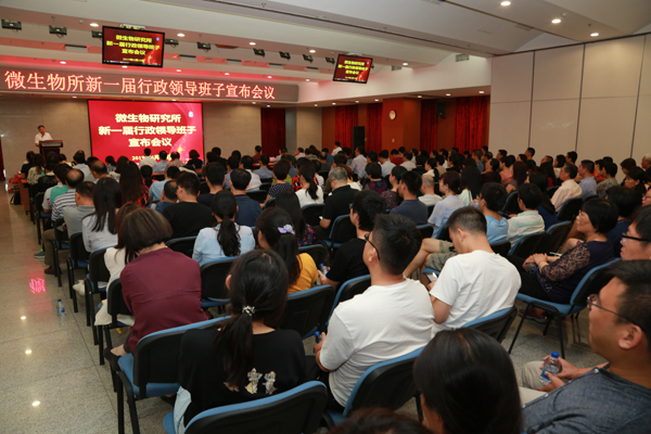 2019年6月10日下午,中国科学院微生物研究所新一届行政领导班子宣布大会在E301报告厅召开。中科院北京分院分党组书记、副院长,京区事业单位党委书记马扬出席会议。微生物所新老领导班子成员、党委委员、纪委委员,中层管理干部、副高级以上专业技术人员、离退休干部及其他各类职工代表等80余人参加了会议。会议由马扬主持。