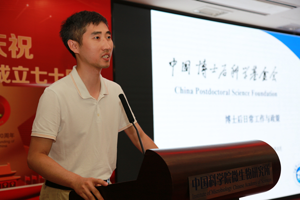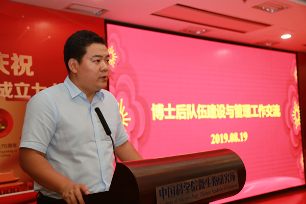 钱韦副所长在致辞中首先向中国博士后科学基金会、中科院人事局和博士后联谊会的指导和支持表示感谢。随后,他详细介绍了微生物所作为以从事基础研究为主的科研院所,在博士后队伍培养现状改善和博士后日常管理体系等方面进行的有益实践和探索,并表示博士后制度已逐渐成为科研院所吸引、培养、使用和选拔年轻高层次人才的重要渠道,博士后流动站已逐步成为科研院所引进优秀师资的人才蓄水池和重要来源。最后,他指出研究所今后会致力于将博士后队伍锤炼打造成科研骨干力量,进一步促进年轻人才的有效挖掘和科研队伍的动态更新。中国科学院博士后联谊会秘书长衣冰向大家简单介绍了中国科学院博士后联谊会的服务宗旨和工作内容,并简短汇报了中科院博士后培养概况。衣冰秘书长表示,随着国家和院所多项博士后新政策,希望各研究所大力发展博士后队伍,在培养中使用,在使用和培养中发现更有潜力、更优秀的博士后,在博士后科学基金会和中科院人事局的大力指导和支持下,携手开创我院博士后工作的新局面。