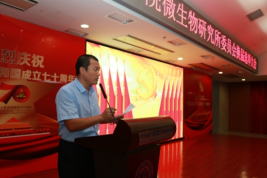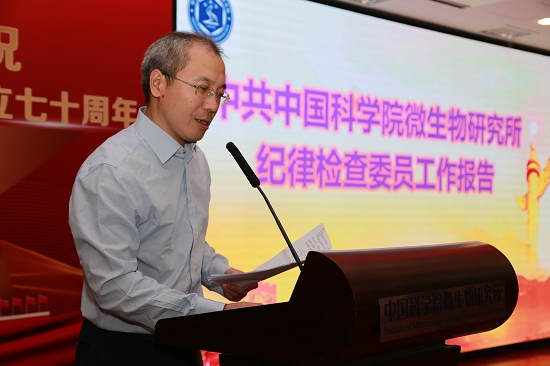 微生物所党委书记李俊雄作报告