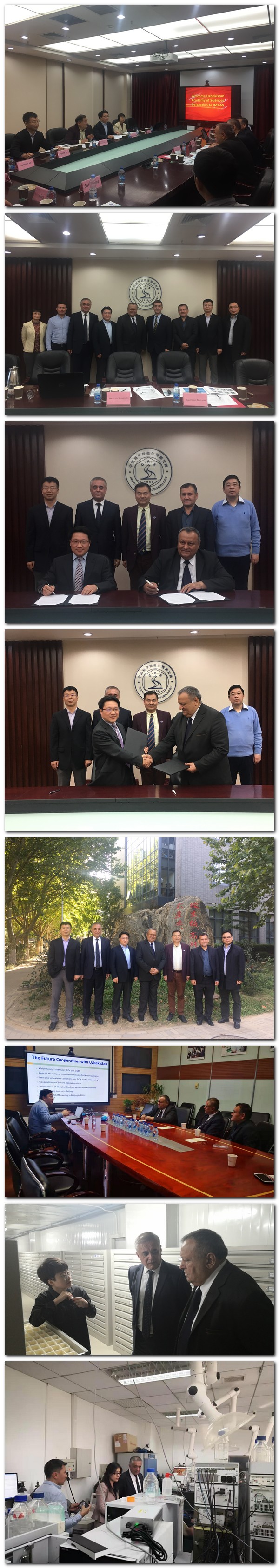 双方经过友好协商,决定在微生物资源和大数据、工业和农业等微生物技术以及微生物药物方面展开启合作,尤其是加强中亚地区极端与特色环境微生物资源与生物技术创新的研究,并展开联合采样、人员交流、技术培训、技术转化等学术交流活动。在双方代表的共同见证下,向华副所长代表微生物所与Kakhramon Davranov所长共同签署了共建“中科院微生物所和乌科院微生物所微生物资源与生物技术联合实验室”的合作谅解备忘录。