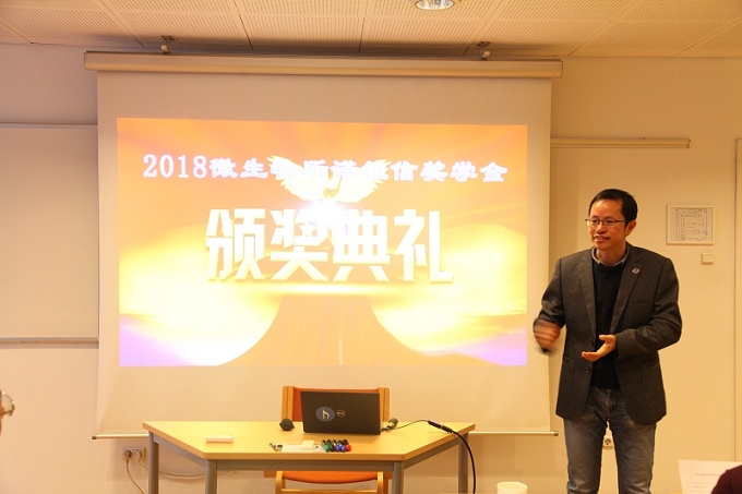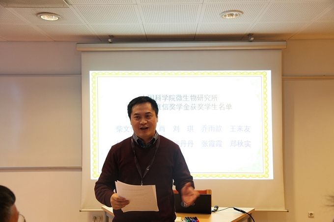 新年伊始,微生物所于2019年1月4日在诺维信中国研发中心隆重举行了2018年度诺维信奖学金颁奖典礼。诺维信(中国)投资有限公司研发总监吴文平博士、微生物所副所长钱韦研究员、研究生部主任刘宏伟研究员、诺维信真菌多样性部门研发经理李明博士、应用研发纺织工业研发经理赖伟坚博士、研发助理李凌羽,微生物所高展老师、梁勇老师、王文婧老师、获奖学生及工程硕士等出席了典礼。会议由高展老师和李凌羽助理主持。