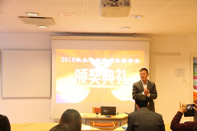 颁奖环节,刘宏伟主任宣布了2018年“诺奖”获得者名单,并向十位获奖同学柴文佳、李肖、刘琪、乔雨歆、王来友、杨寒、于原玲、张丹丹、张霞霞、郑秋实表示祝贺,希望同学们充分感受企业的创新文化和氛围,为各自未来的职业发展做好规划。吴文平博士和钱韦副所长为获奖学生颁奖并合影,刘琪同学作为代表发表了获奖感言。